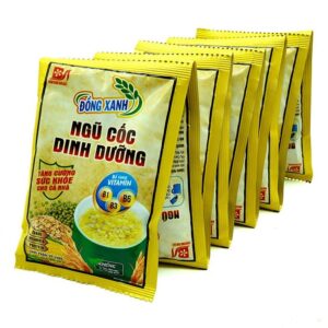 Ngũ cốc dinh dưỡng Đồng Xanh là một sản phẩm dinh dưỡng rất được ưa chuộng trên thị trường bởi vì nó mang lại hương vị thơm ngon và vô cùng bổ dưỡng. Ngũ cốc dinh dưỡng Đồng Xanh cung cấp hàng loạt các các loại dưỡng chất tốt cho sức khoẻ có thể kể đến như: protein, chất khoáng, chất béo, vitamin B1, B3, B6. Ngũ cốc có thể dùng để kết hợp với sữa hoặc trái cây để cung cấp nguồn dinh dưỡng dồi dào, là một món ăn không thể thiếu trong thực đơn giảm cân, giúp giữ dáng, đẹp da.