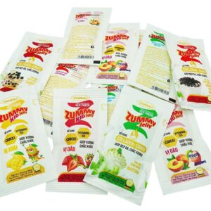 Túi kẹo thạch Zummy Jelly ( Trái cây & Trà sữa) được sản xuất trên dây chuyền khép kín, đóng gói thành từng gói 14g. Được kết hợp 6 vị thạch của dòng Zummy Jelly gồm : vị Đào, vị Dâu, vị Xoài, vị Trà sữa Trân châu đường đen, vị Trà sữa Trân châu Hồng trà đào, vị Trà sữa Trân châu Matcha.